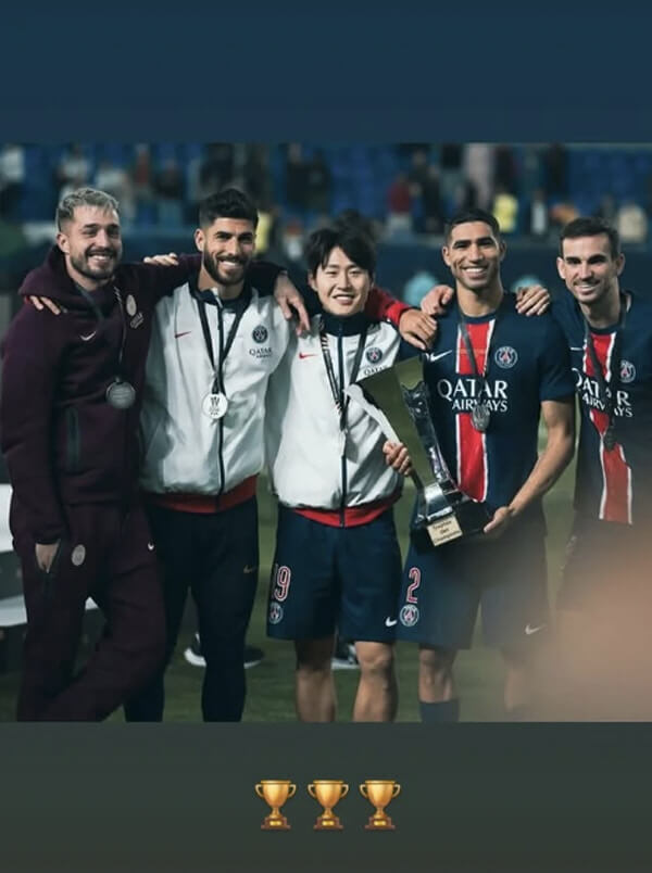 이강인은 2025년 1월 6일, PSG에서의 4번째 우승컵을 들어올렸다.